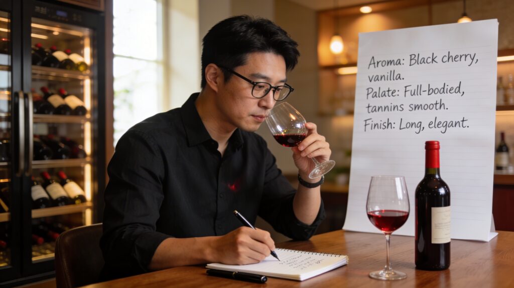 - 기억이 날아가기 전에 기록하기: 와인의 맛과 향은 생각보다 빠르게 희미해집니다. 와인을 마시는 자리에서 바로 앱이나 수첩에 핵심 단어(예: #자두향 #부드러움)라도 적어두는 습관을 들이세요.
